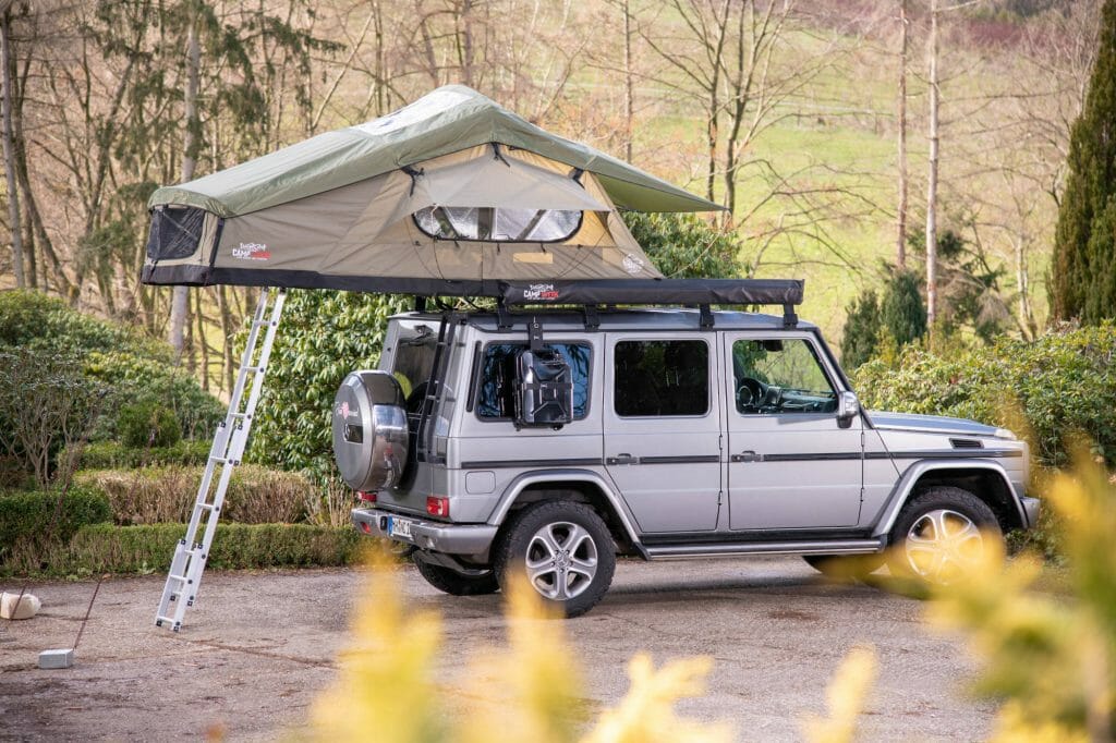 Con la tenda da tetto ADVENTURE, il tuo veicolo si trasforma in un vero e proprio camper con una splendida vista panoramica. La tenda da tetto Adventure si apre in pochi secondi offrendo uno spazio abitativo sorprendentemente confortevole e versatile. L'ampia zona notte, dotata di un materasso di alta qualità e molto comodo, è facilmente accessibile grazie alla scala in dotazione.Una grande finestra panoramica ti permette di goderti una vista mozzafiato sul cielo stellato direttamente dal letto. Durante il viaggio, la tenda da tetto, compatta quando chiusa, è quasi impercettibile sul veicolo. Un punto forte della tenda Adventure è la rete portaoggetti integrata. Extra robusta e progettata appositamente per questo modello, offre spazio aggiuntivo e completa perfettamente la tua avventura.